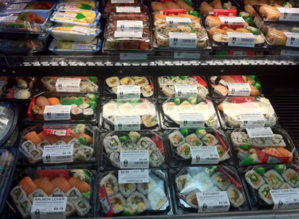 When I miss fresh fish, my sushi lunches, and hot oden, I order all my favorite bentos at the local Japanese market. Marukai (Cupertino) carries pre-made sushi with scrumptious salmon and sweet tuna chunks in elegant take-out containers.